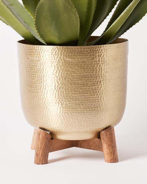 Gold Metal Mango Wood Plant Pot Large Oliver Bonas